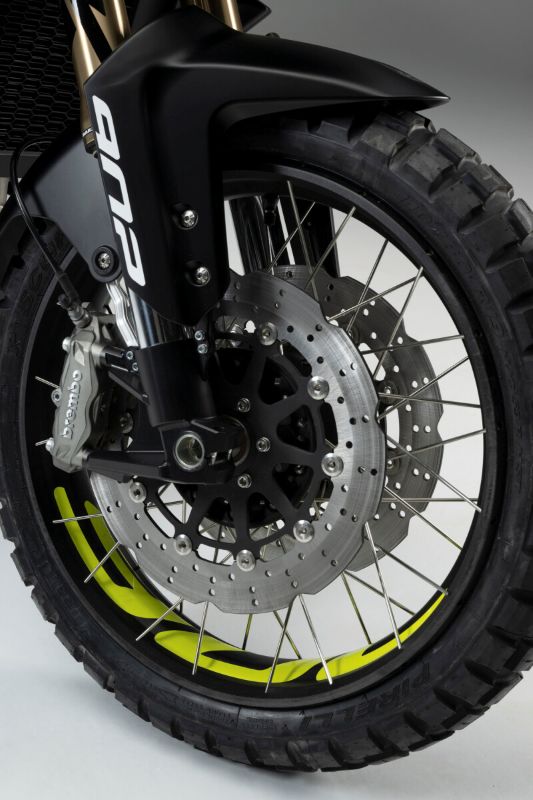 BRZDOVÝ SYSTÉMBenelli TRK 902 Xplorer je vybaven výkonným brzdovým systémem, který zajišťuje bezpečnou a stabilní jízdu za všech podmínek. Přední brzdový systém tvoří dvojité semi-floating disky o průměru 320 mm, doplněné radiální brzdovou pumpou a 4-pístkovými brzdovými třmeny, které poskytují vynikající brzdnou sílu i v náročných terénních podmínkách. Zadní brzda je jednolitý disk o průměru 260 mm s dvoupístkovým třmenem a systémem ABS, který zajišťuje bezpečné brzdění i při jízdě mimo silnice. Celý systém je navržen pro maximální kontrolu a výkon v každé situaci. | ![]() |